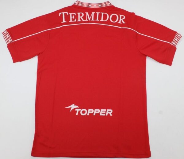 The jersey proudly displays the C.A. Independiente crest on the left chest, alongside the bold “TERMIDOR” sponsor logo across the front, a nod to the era’s unforgettable style.