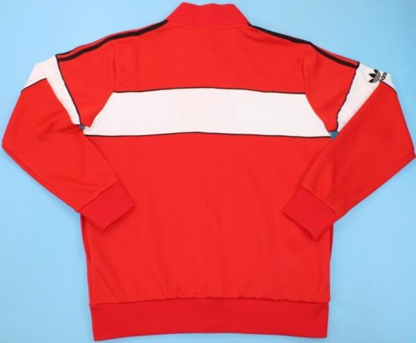 This is Manchester United’s retro tracksuit jacket from the 1984-1985 season. It is with this jacket that the United players will win the English FA Cup against Everton. A season marked by the goals of David Platt and Mark Hughes.