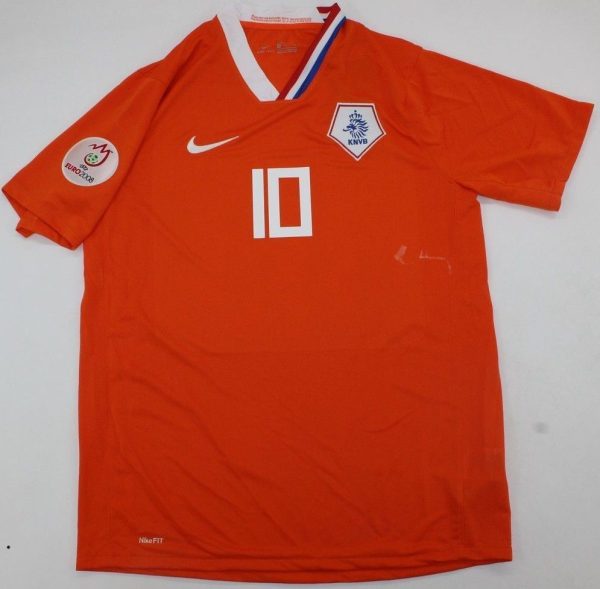 Worn by the Dutch national team during Euro 2008, this iconic orange jersey became a symbol of the Netherlands’ spectacular attacking football.