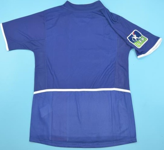 This kit embodies PSG’s classic style with its bold red vertical stripe on a deep blue background, accented with white details for a sleek finish. The Thomson sponsor sits proudly on the chest, a symbol of early 2000s football nostalgia.
